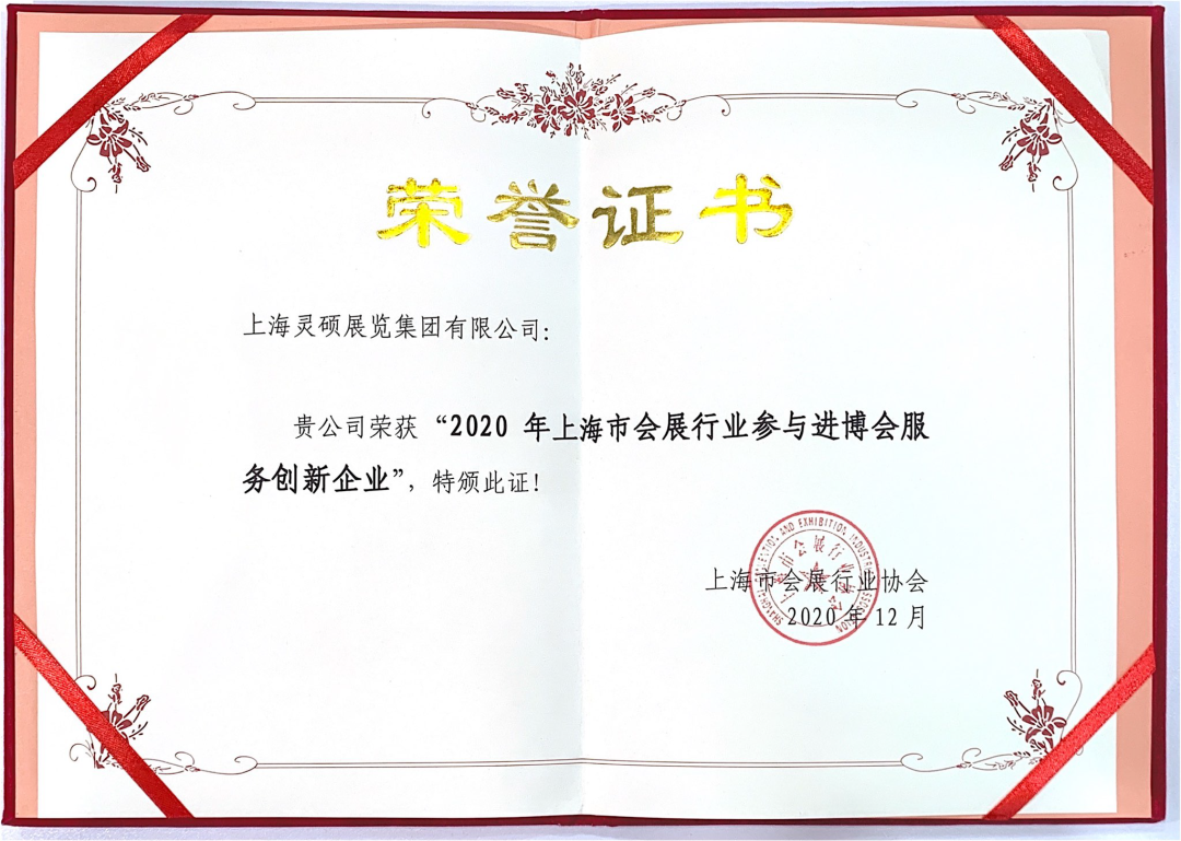 作為理事單位的靈碩展覽集團,憑借在上海展會中的亮眼表現(xiàn),被協(xié)會授予“2020年上海市會展行業(yè)參與上海展會服務(wù)創(chuàng)新企業(yè)”榮譽。